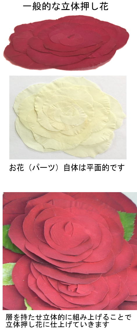 そのため加工方法が異なる場合、同じ花材であってもお仕上がりの発色(お色)が異なる場合がございます