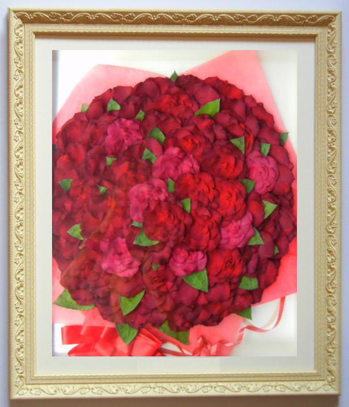 バラなど花弁をばらして加工する花材につきましては、使用できる花弁をセレクトして加工いたします。