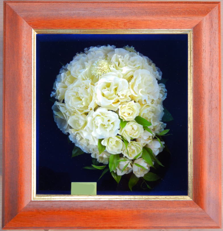 結婚式の記念のウェディングブーケをドライ加工して保存致します。