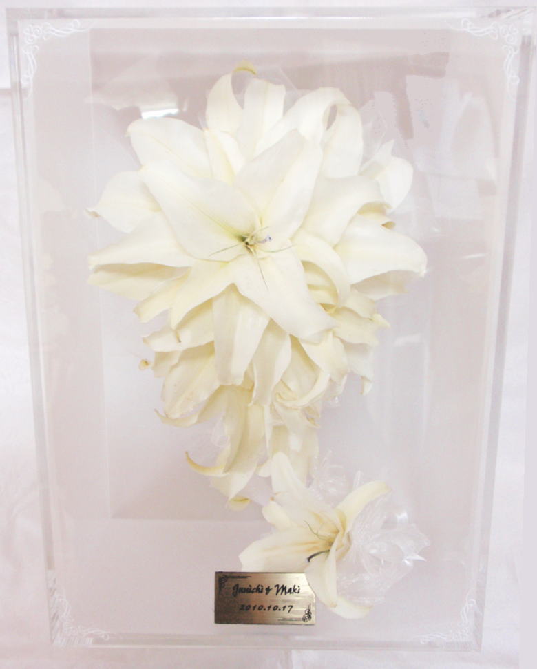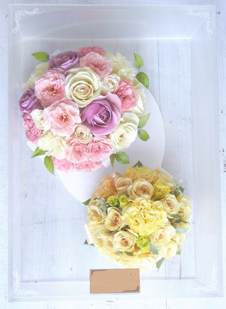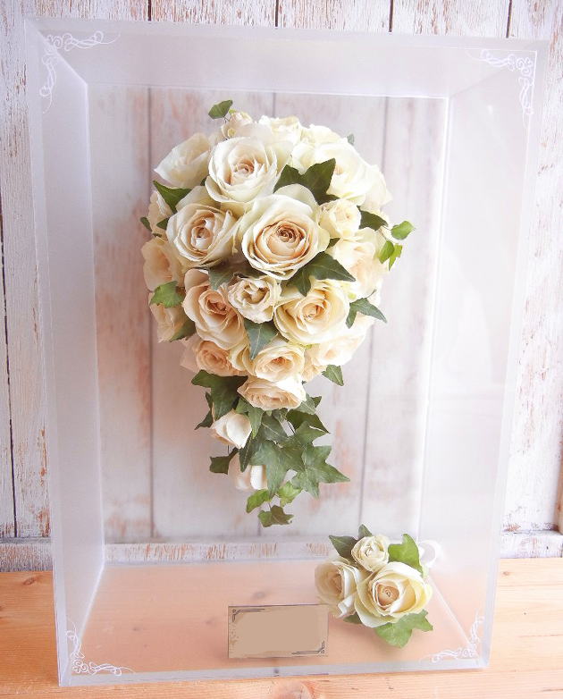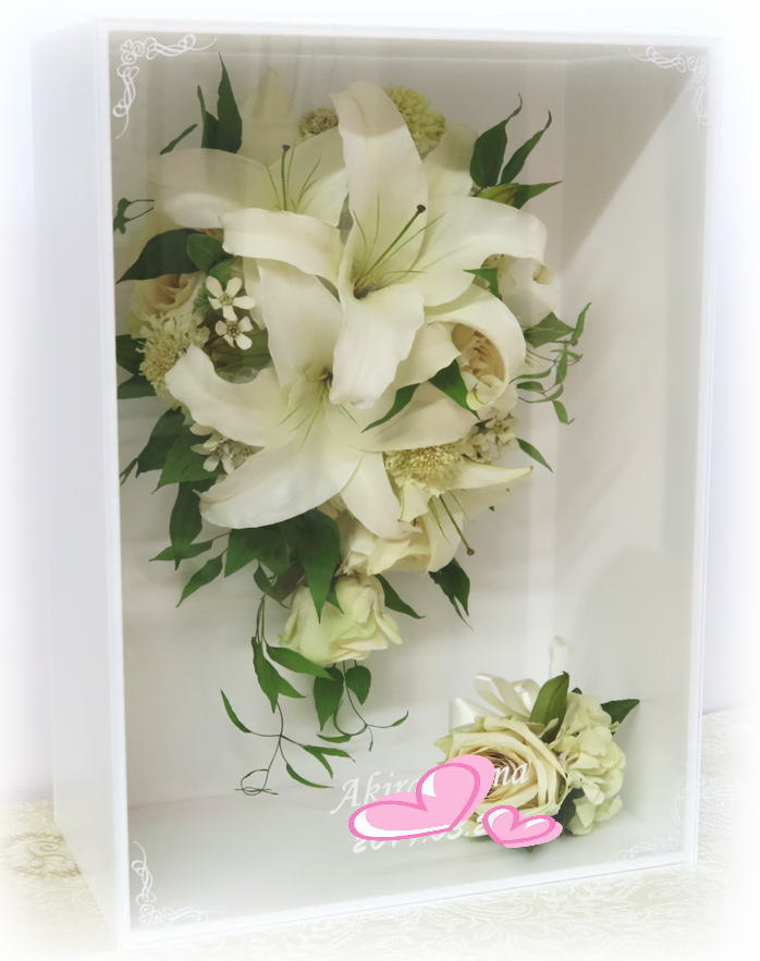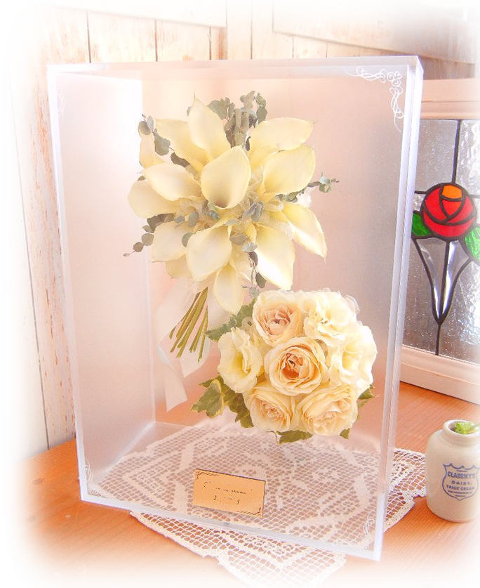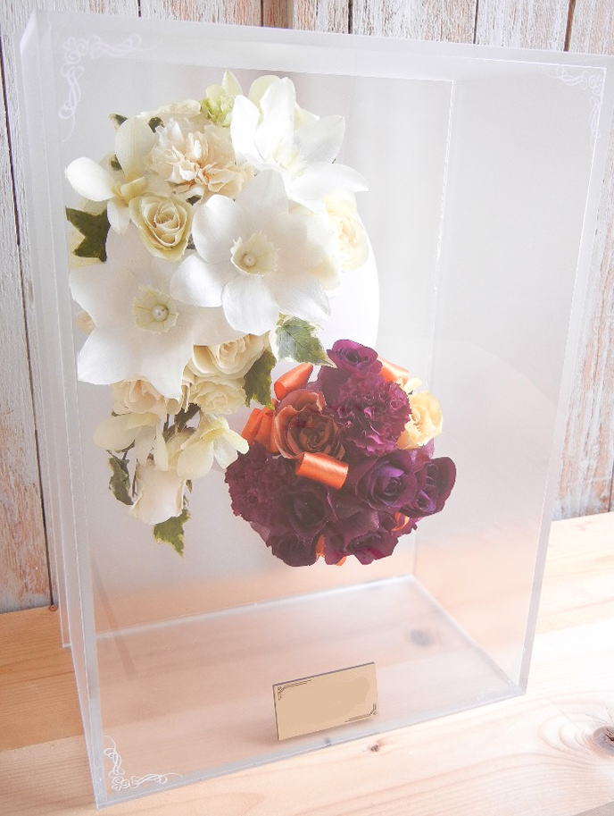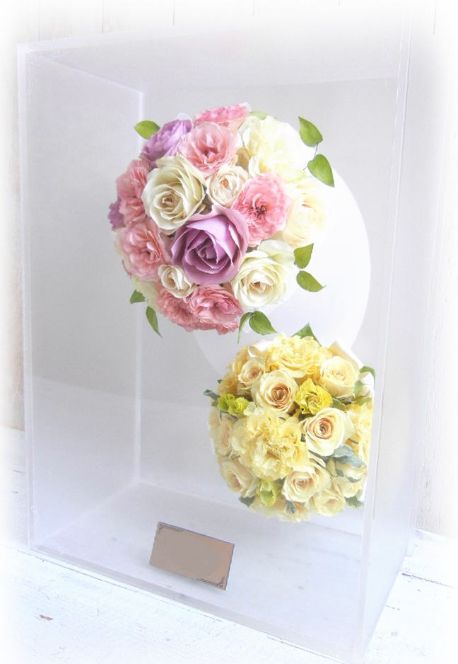 ![]() 《アクリルケース》 ジュエルホワイトロング Wブーケ 1つのケースに2個のブーケをお残しいたします Wデザイン料 レクタングルの中に2個ブーケをお残しいたします