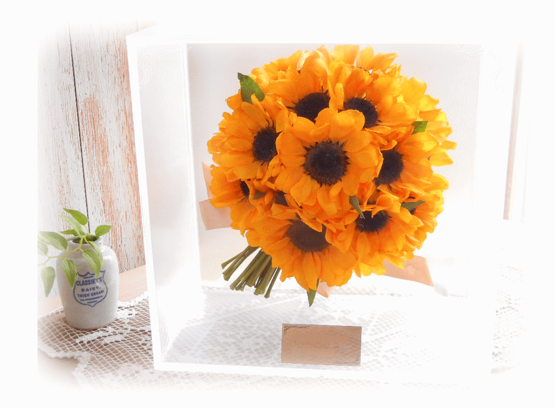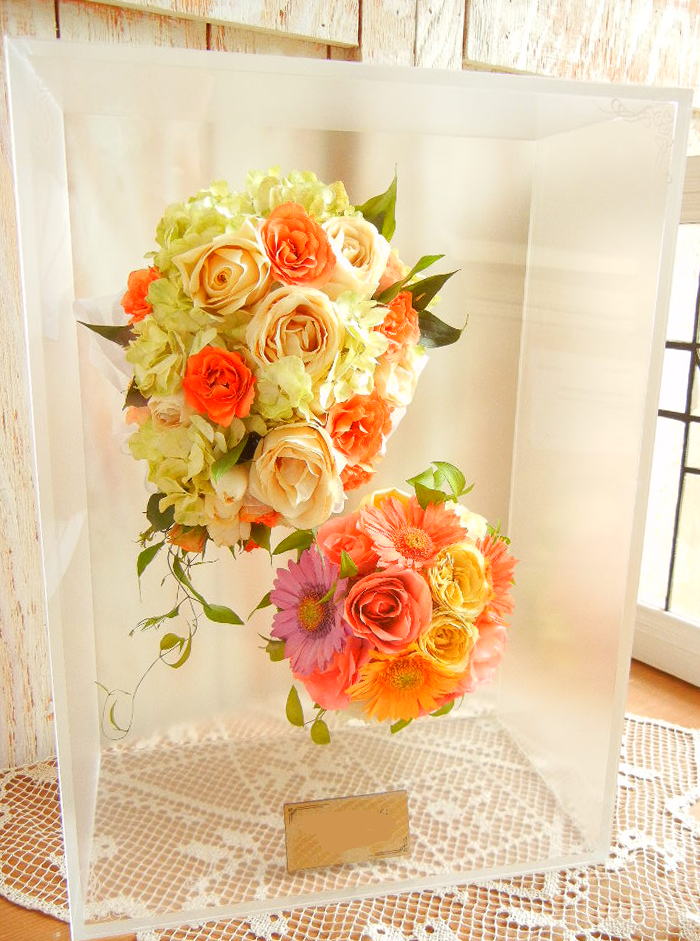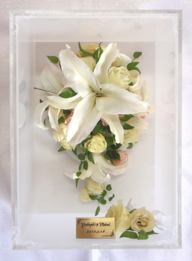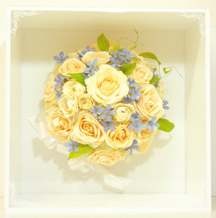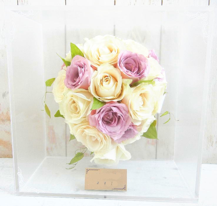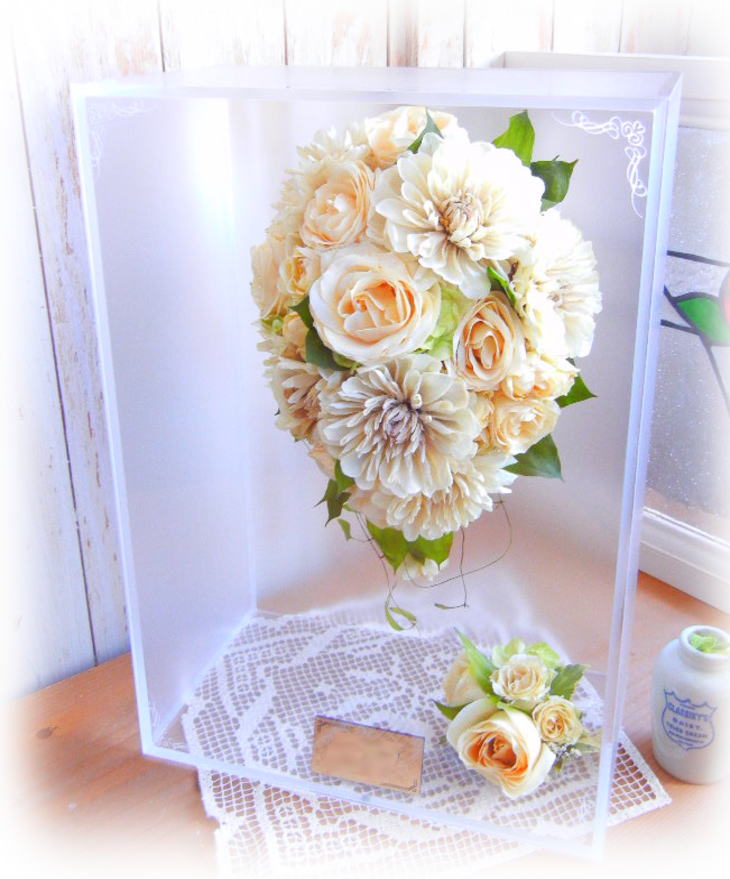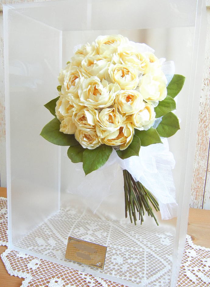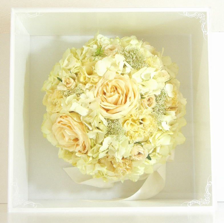 ブーケに使用された資材(リボンやパールのアクセサリー等)はお入れできない場合もございます。