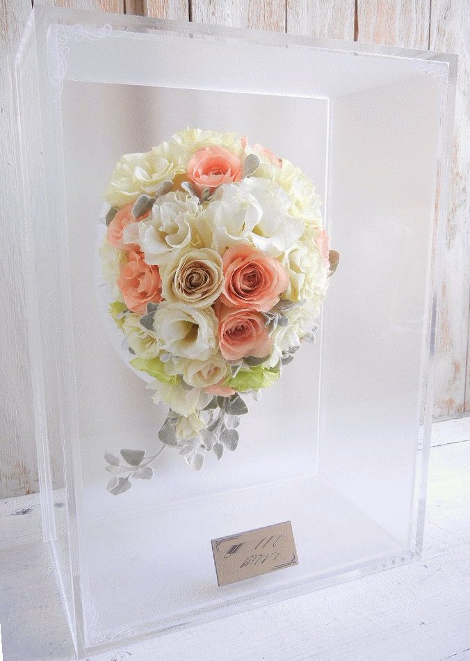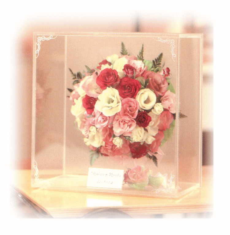 《アクリルケース》 ジュエルホワイト スクエア 250*250*140mm ウェディングブーケを立体的なままアクリルBOXに納め 美しいフォルムをお楽しみいただけるタイプです まるいスタイルのラウンドブーケにおすすめです \60000 ↓ ただ今お値引き中 得々\49999 ↓ さらにお値引き中 超得々\46999 |