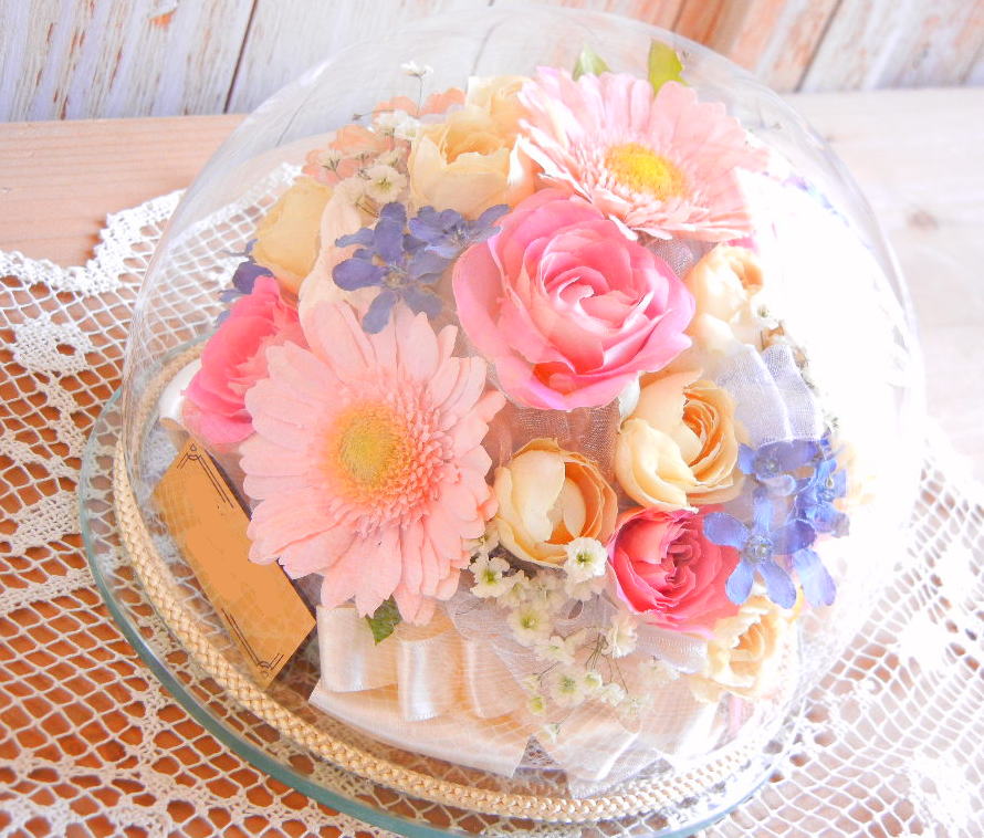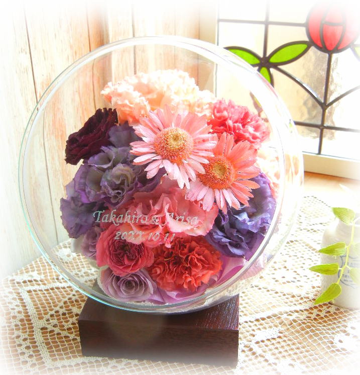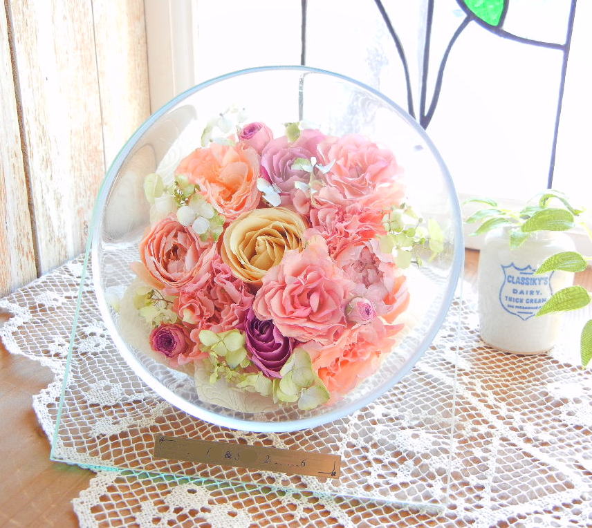 ブーケのお花でドームの中にアレンジされます