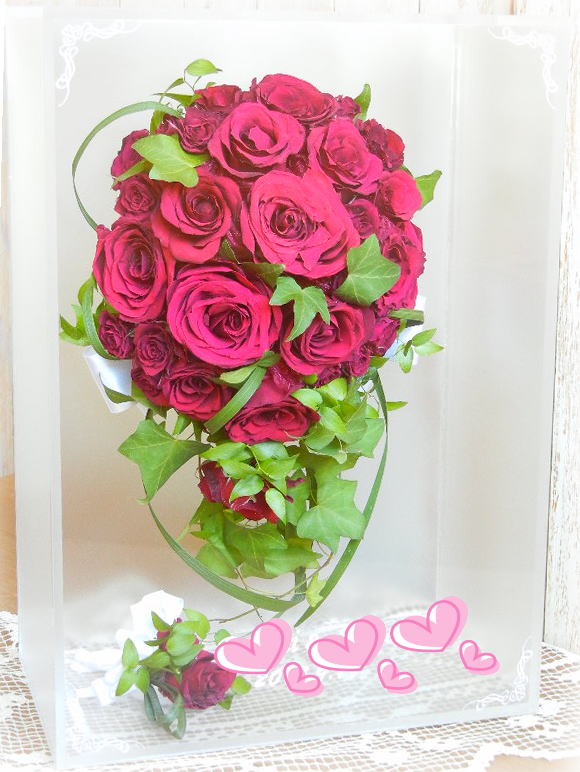 《アクリルケース》 ジュエルホワイト ロング 250*350*140mm 立体的なままアクリルBOXに納め 美しいフォルムをお楽しみいただけるタイプです 流れるスタイルのキャスケードブーケにおすすめです ¥65000 ↓ ただ今お値引き中 得々¥54999 ↓ さらにお値引き 超得々¥48999 |