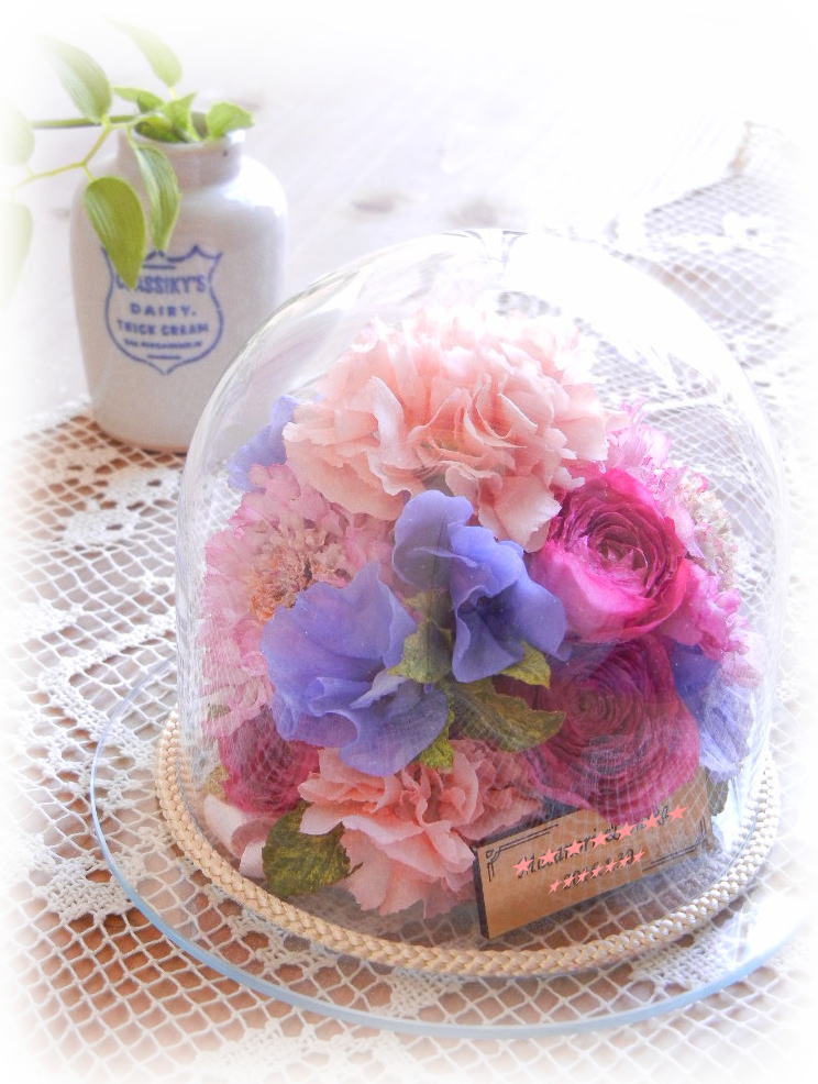 プリザーブドフラワーのデメリット プリザーブドフラーのメリットとしてそのまま飾れることをあげましたが 反面 湿気を吸ったり、ホコリをかぶってしまうため劣化しやすい (そのまま飾っていただくと3年くらいしか綺麗な状態は難しい) ケースに入れることにより吸湿気やホコリなどから遠ざけることができますが 手で触れなくなりますので生花の柔らかさを体感できなくなります (容器に入れることで5年〜8年くらいと少々長く飾っていただくことはできます) プリザーブドフラワーは湿気の少ないフランスで開発されましたが 日本の気候に対応しきれていないのが実情です お花を着色料にドブ漬けして人工着色をしますので 本来お花のもつ自然なグラデーションや発色がございません。 1りん1りん薬品加工をいたしますので工程が多く 加工費が割高となります 加工できる花の種類が限られます。 (不向きな花材 花びらが薄いタイプのお花 肉厚のものなど) |