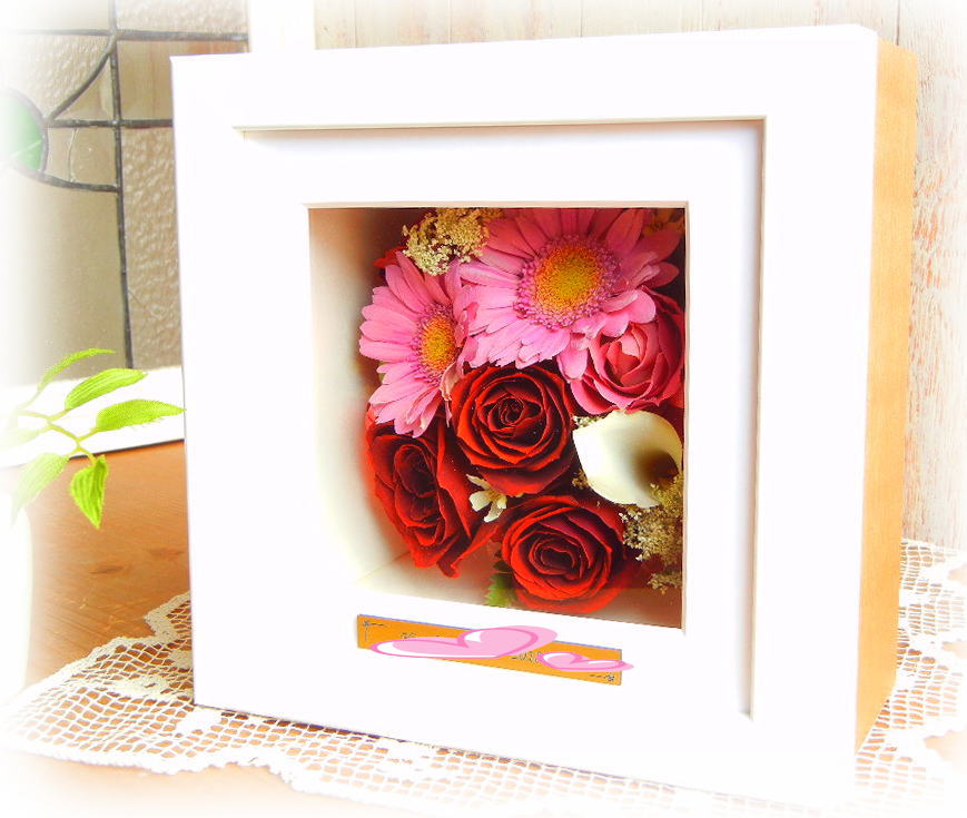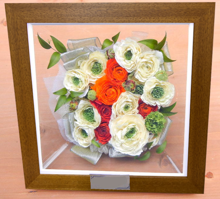 Cadre(カードル) W230×H285×D105mm ※バラの花束の場合、お入れできる輪数が制限される場合がございます。 オプション料金を追加いただくことによって、より多くの輪数を お残しできる場合は お花が到着後、個別にデザイナーよりご案内させていただきます。 (オプション追加する しないはご自由にお決めいただけます) 壁掛けと立てかけどちらでも可能です ¥52000 得々¥44999 特価¥34999