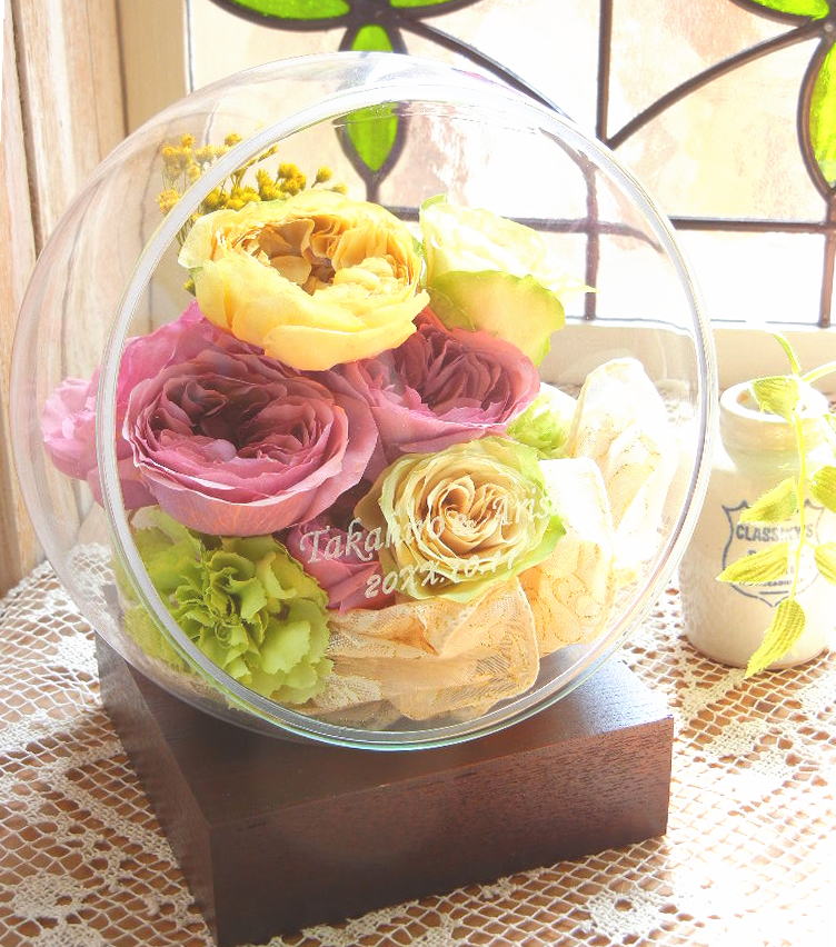 お預かりいたしましたお花はドライ加工により色彩がかわるものがございます。