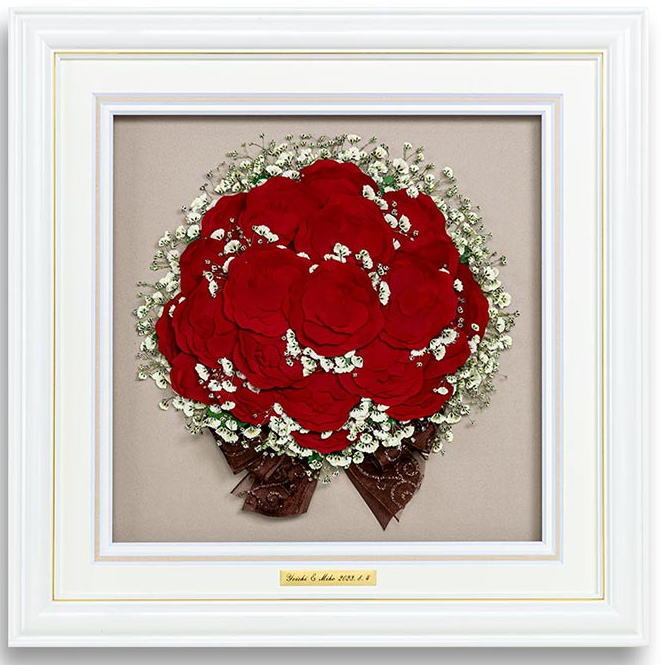 〜〜美しさを追求した立体押し花〜〜 他とは全く違う特殊立体押し花技法 厚さ約1センチの空間で花びらを何層にも重ねてデザイン 本物のブーケに近い花のふくらみを再現 立体感や色鮮やかさが他社とは全く異なる仕上がりです 他では真似することができない群を抜いた技術の高さと 『美』を追及してつくり上げる作品はまさに芸術品と言っても過言ではありません |