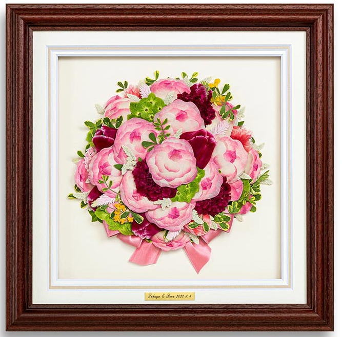 基本的にフレーム内のデザインはお預かりいたしましたブーケのスタイルを基にデザインさせていただきます。