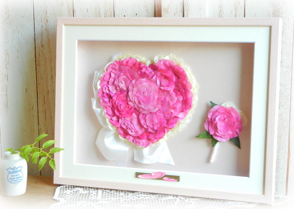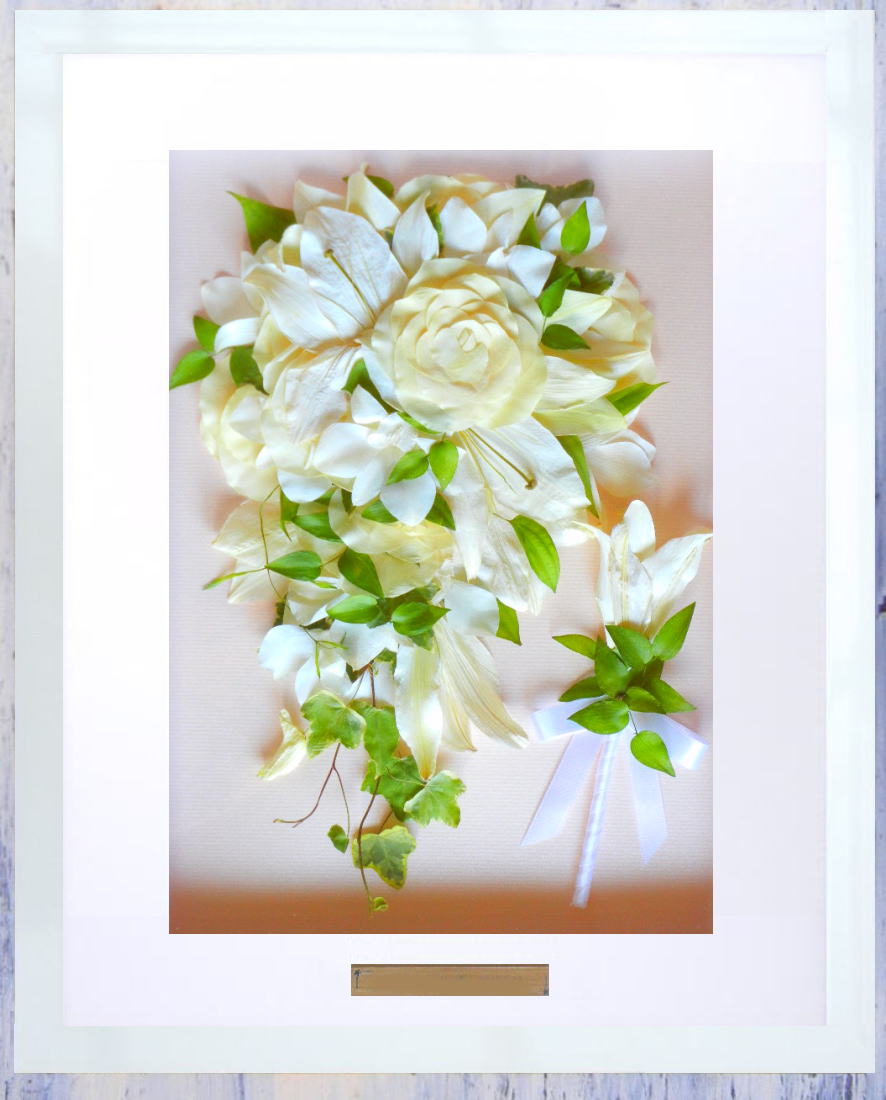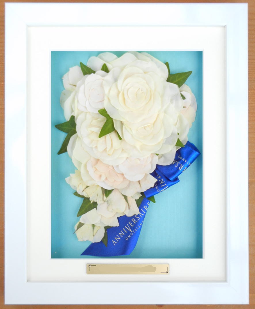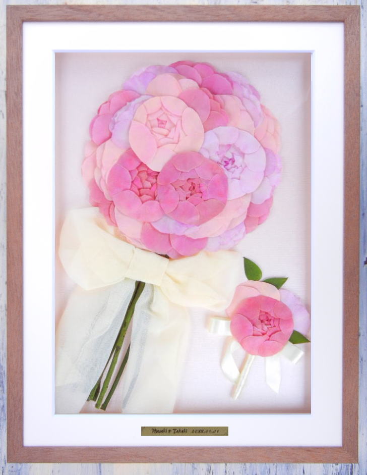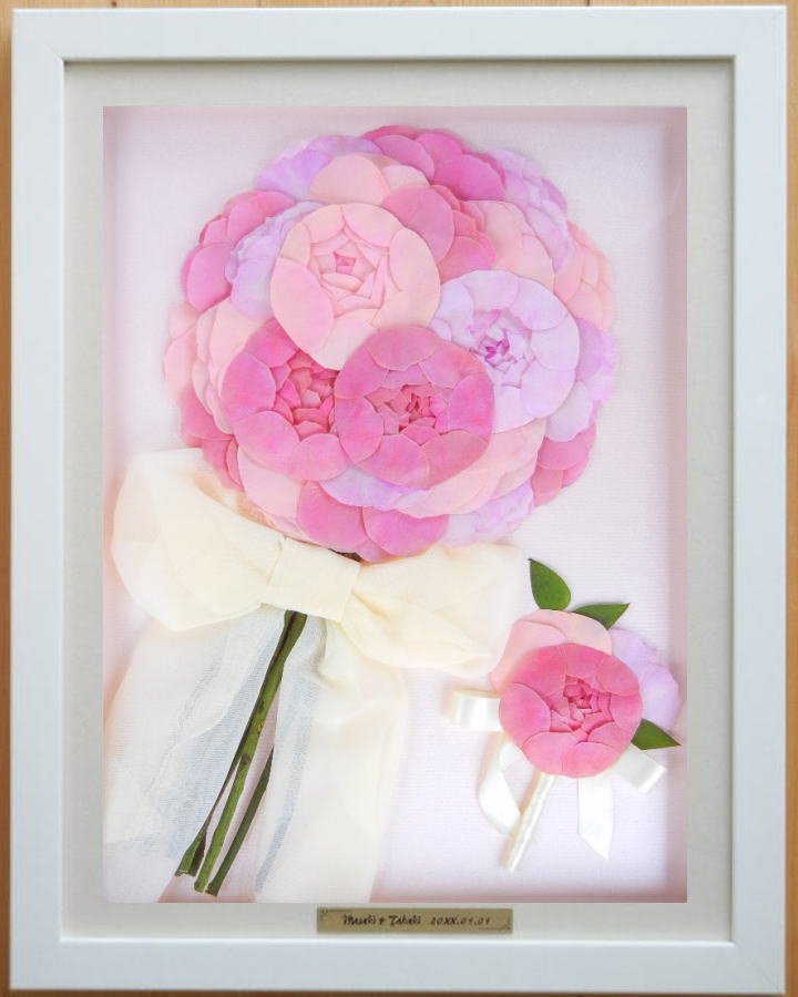ドライ加工にも用いる遠赤外線装置を押し花加工にも使用しております。 プレスしたお花を装置にかけることにより、お花の色素がよりきれいに発色します 浮き出た感じの立体的な押し花 ♪☆◎♪☆◎♪☆◎♪☆◎♪☆◎★♪☆◎♪☆◎♪☆◎♪☆◎♪☆◎★ お花の仕上がりにより使用できない花材もございます。 届きましたブーケをドライ加工させていただきますが 傷みの激しい場合 痛みの激しい場合はご相談させていただきます 大輪の花材につきましてはスペース的にお入れできない場合や お花の一部のパーツのみ使用となる場合がございます 厚みのある実物やアクセサリー等をお入れした場合バック地に多少しわが入る場合がございます 加工により色彩が変わる場合があります。 ブーケ以外の花材(ブートニア ヘッドパーツ等)もお送りいただいた場合は ブーケ本体に織り込んで製作させていただきます。(ブーケと異種の花材の場合はアトリエの判断でお入れしない場合もございます) ただしオプションでブートニアをお申し込みの場合はブートニアを独立してお残しいたします。 ブーケに使用された資材(リボンやパールのアクセサリー等)は押し花にお入れできない場合もございます。 またアトリエの判断で加工させていただいたり、代替とさせていただく場合もございます。 基本的にフレーム内のデザインはお預かりいたしましたブーケのスタイルを基にデザインさせていただきます。 花びらや葉が落ちる場合がございますがご了承願います。 加工途中の状態をご覧頂くことは出来かねます。 (特殊加工において作業中断等による品質低下を防ぐため) お入れできない分の花材につきましてのご返却は出来かねます。 資材(かごやリボン、アクセサリー等)につきましては、原則といたしましてご返却はいたしておりません 生花の時点で同じようなお色の花でも、乾燥による色素の出方は異なってきます。 グリーン系・黄色系・薄いピンク系のお花は色素が抜けやすい傾向がございます。 白はアイボリーやクリーム系に発色する傾向がございます。 同じ白のお花でも出方は異なります。 赤系・濃紅のお花は黒っぽくなります