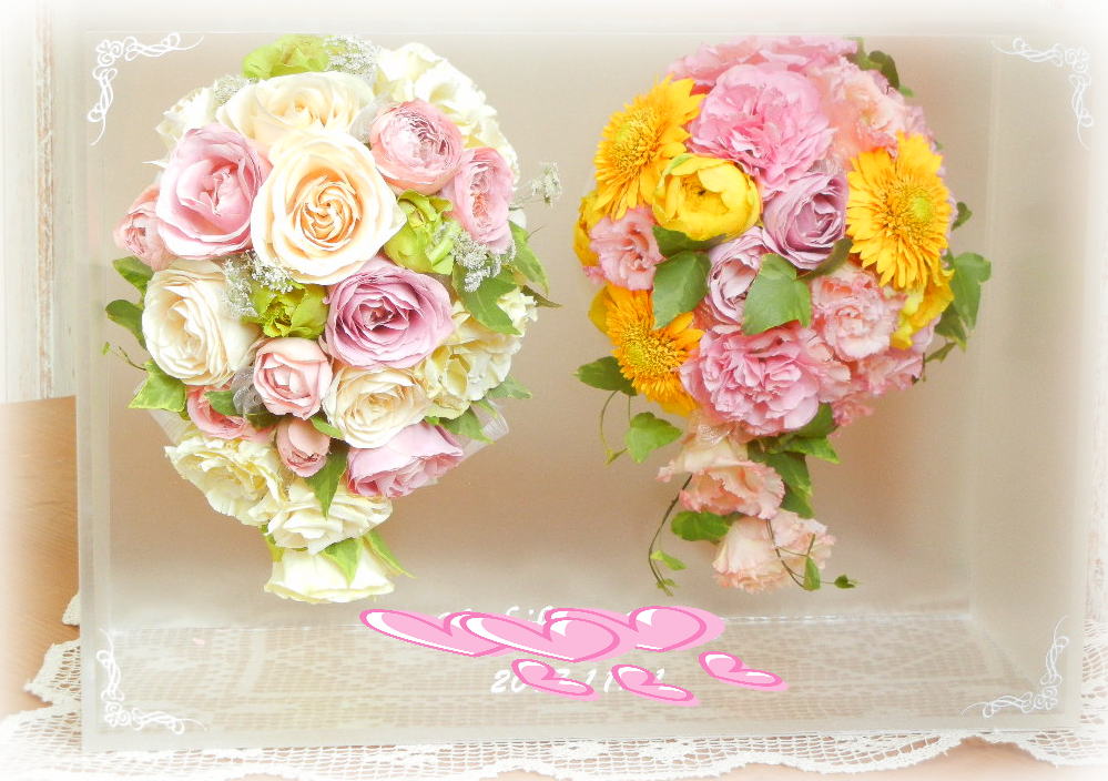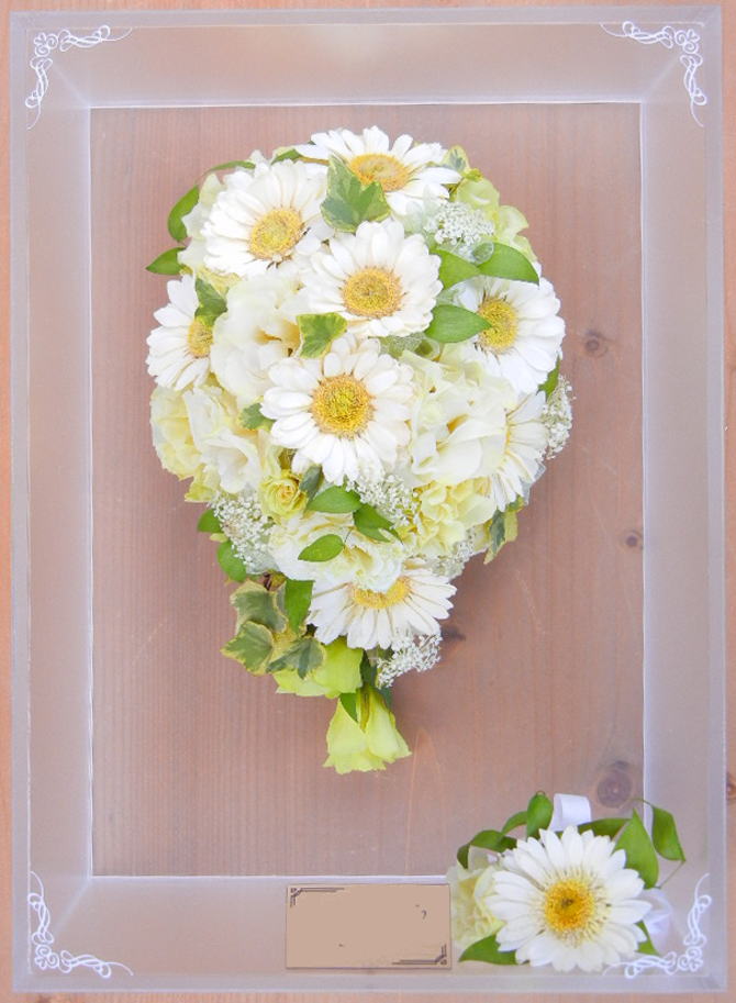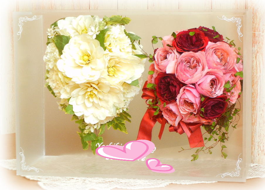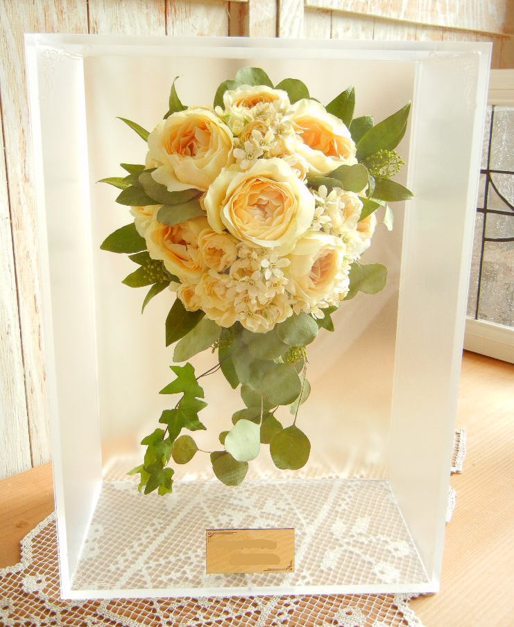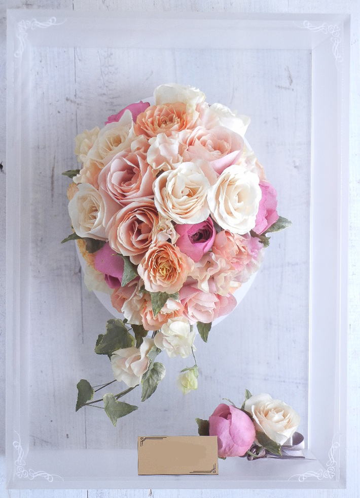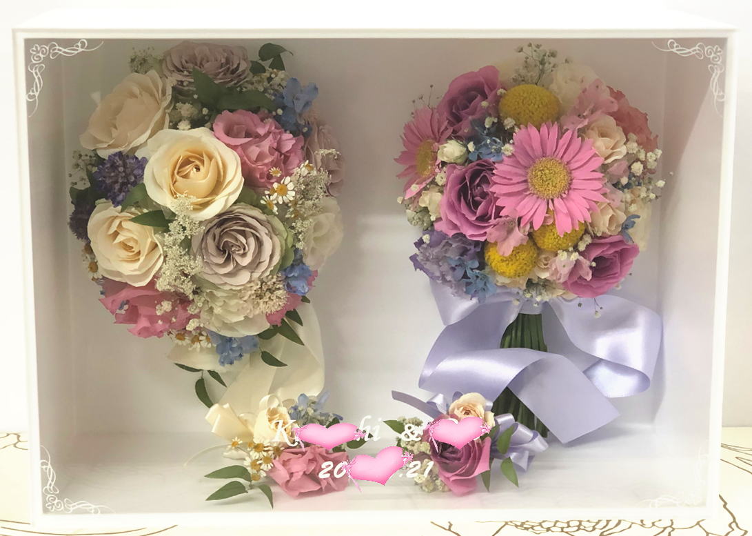 ブーケに使用された資材(リボンやパールのアクセサリー等)はお入れできない場合もございます。