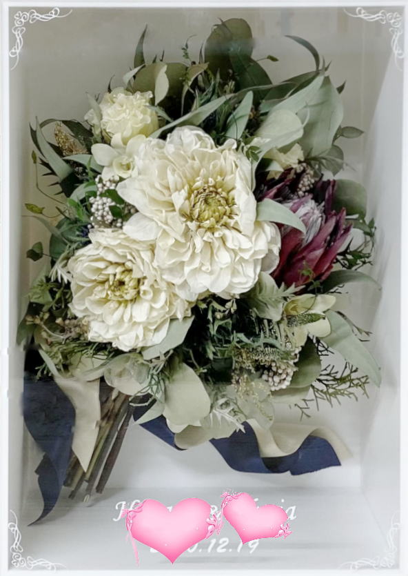 ウェディングブーケをドライフラワーに致します。