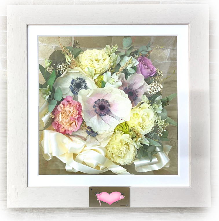 ブーケに使用された資材(リボンやパールのアクセサリー等)はお入れできない場合もございます。