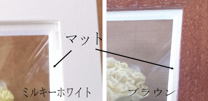 〜〜〜押し花のプレートにつきまして〜〜〜 プレートの仕様が下写真のタイプに変更となっております あわせてプレート位置が外のマットにつける形に変更となっております |