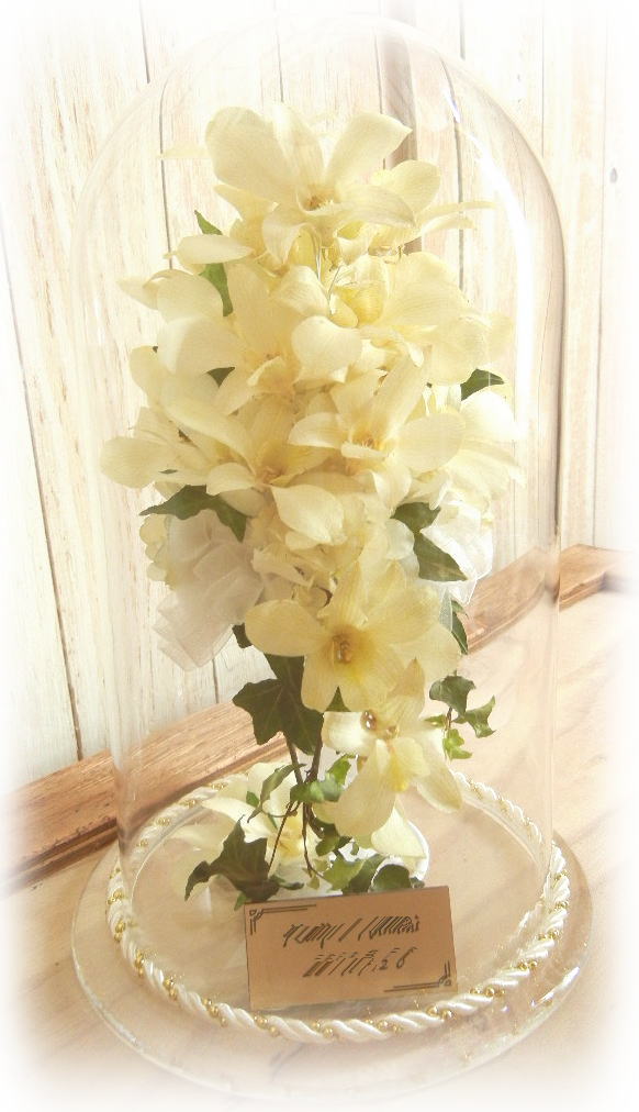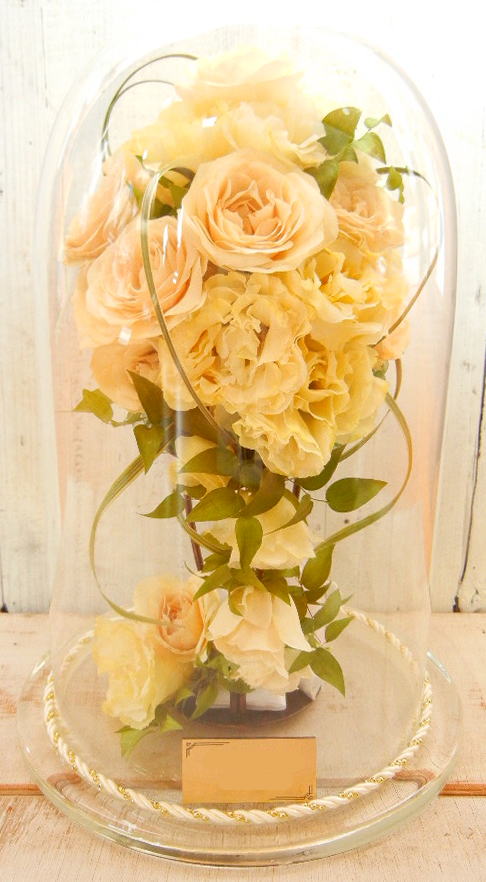 ロングボトル ![]() ![]() 写真は Lサイズです プレートはゴールドプレートになります ボトルの底面のガラスプレートが写真と多少仕様変更となる場合がございます ロングボトル キャスケードブーケ(流れるスタイル)をデザインするのにに適したボトルです ロングボトルは新郎様のブートニアも独立して残せます(無料) *ブートニアの発送が無い場合はブーケの中からお花をチョイスいたしまして底面にアレンジさせていただきます 【Mサイズ】 と 【Lサイズ】 がございます 花びらや葉の落下が極力無いような技法を取り入れてはおりますが ロングボトルは特に非常にデリケートなボトルとなっております。 通常のドライ加工に比べ輸送時の細かい振動でもお花に加わる振動が増幅されますため 花びらや葉が多少落下するリスクが高くございますことをあらかじめご了承願います。