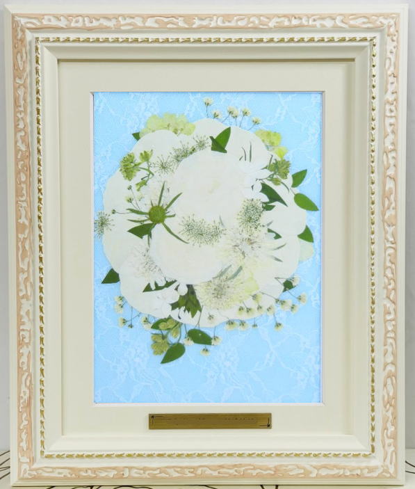 基本的にフレーム内のデザインはお預かりいたしましたブーケのスタイルを基にデザインさせていただきます。