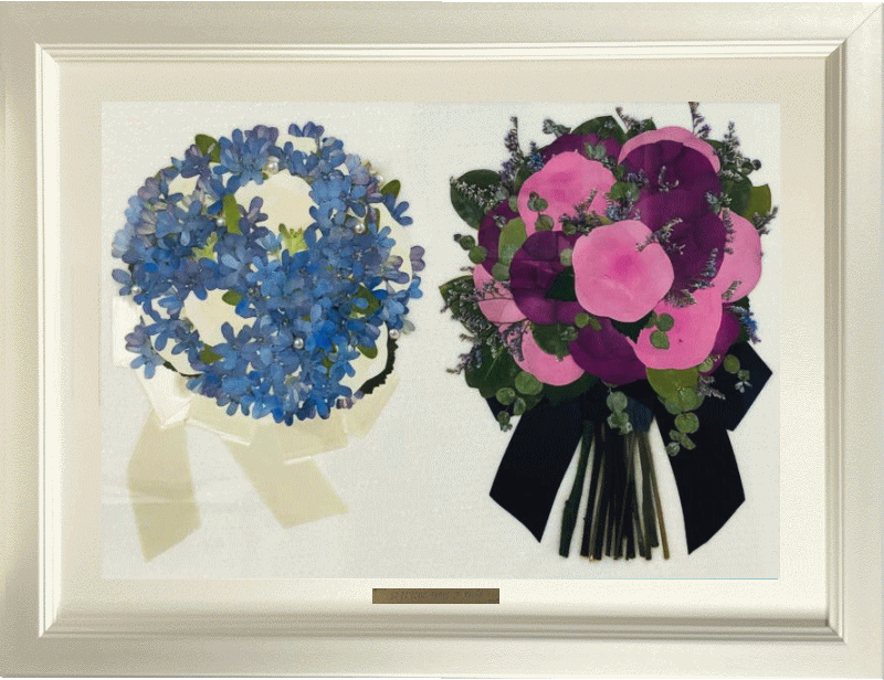 ブーケに使用された資材(リボンやパールのアクセサリー等)は押し花にお入れできない場合もございます。