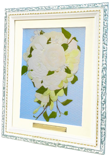 基本的にフレーム内のデザインはお預かりいたしましたブーケのスタイルを基にデザインさせていただきます。