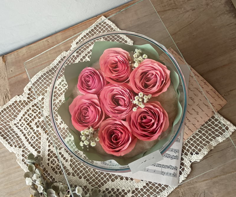・お花に残った乾燥剤の粒が多少こぼれますのでご了承願います。