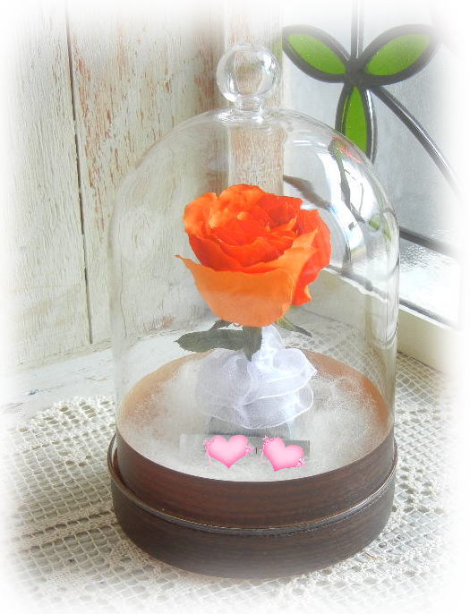 脱酸素処理をした密封ガラス空間を作り出し、その中へ加工したお花を密封保存することで