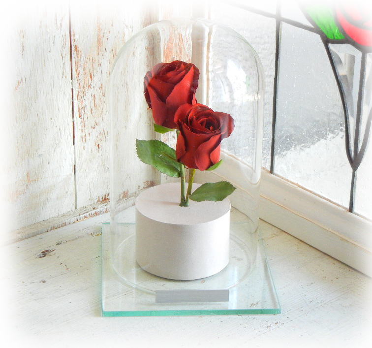 脱酸素処理をした密封ガラス空間を作り出し、その中へ加工したお花を密封保存することで