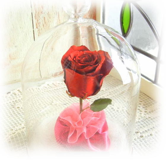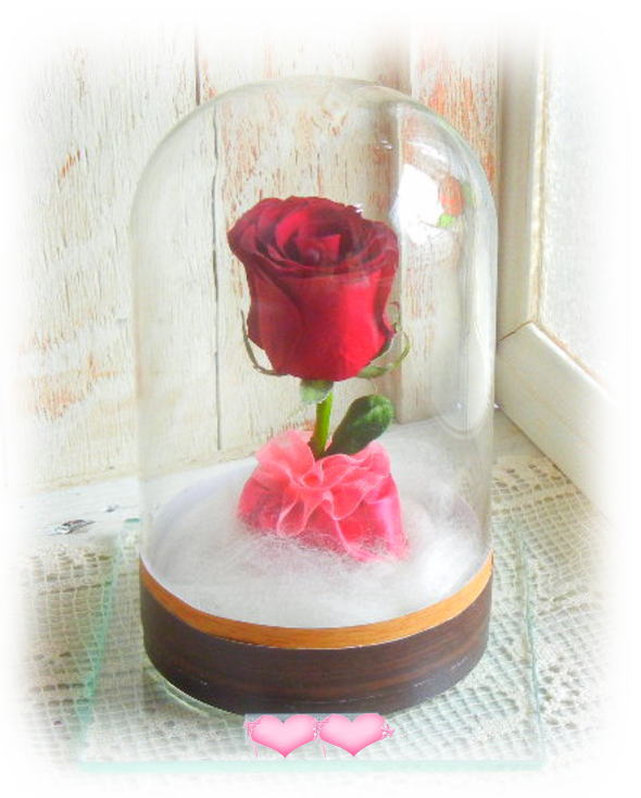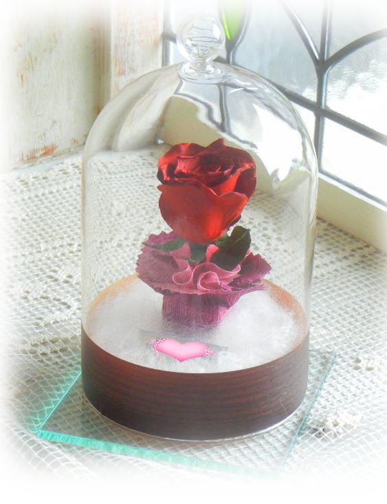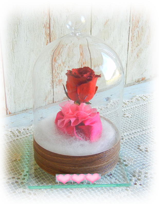 脱酸素処理をした密封ガラス空間を作り出し、その中へ加工したお花を密封保存することで
