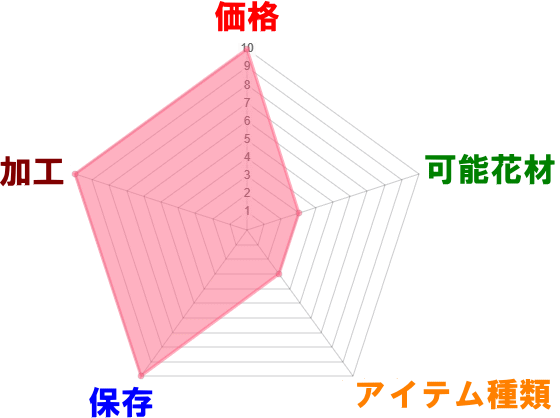 花材の痛みが多い場合は、ドライアップ加工自体が難しいことがあります。