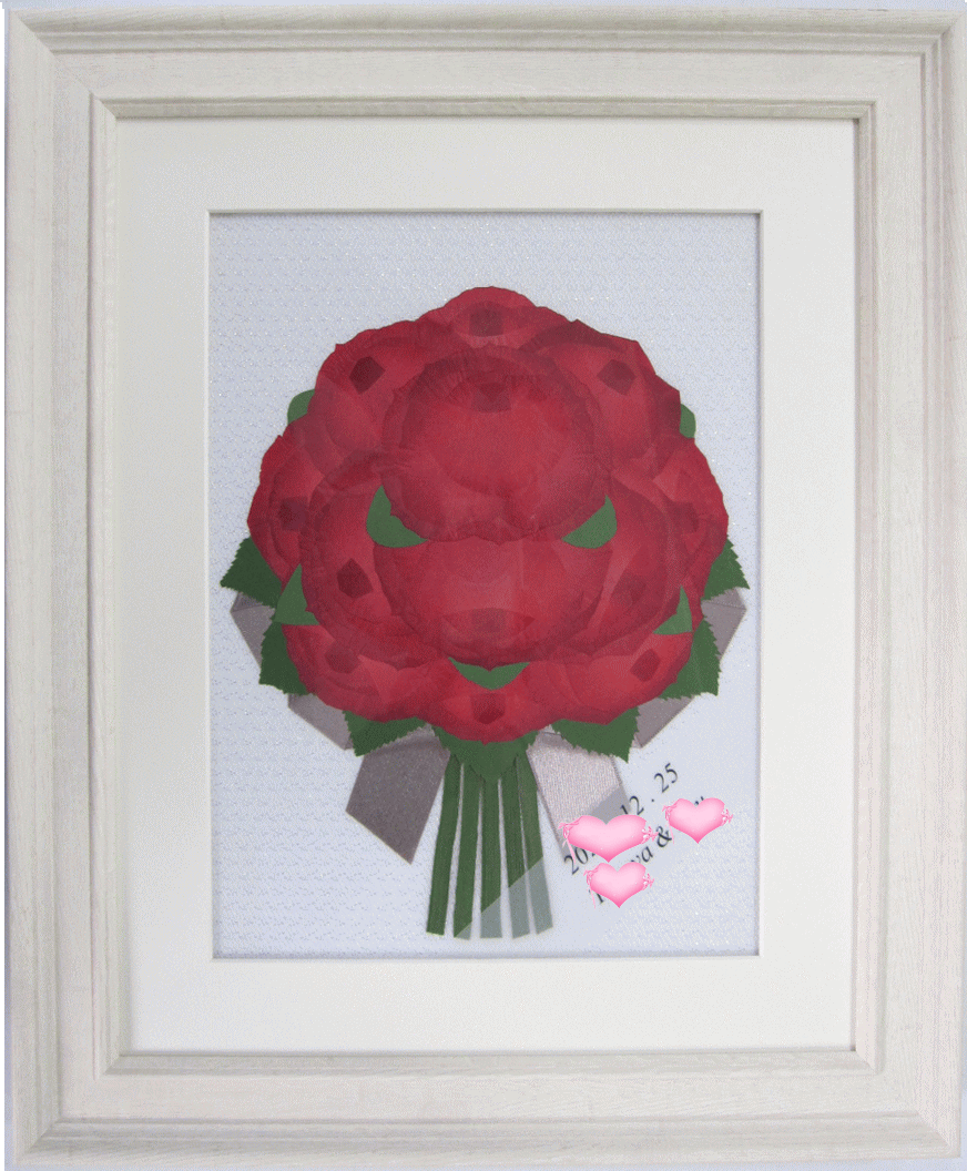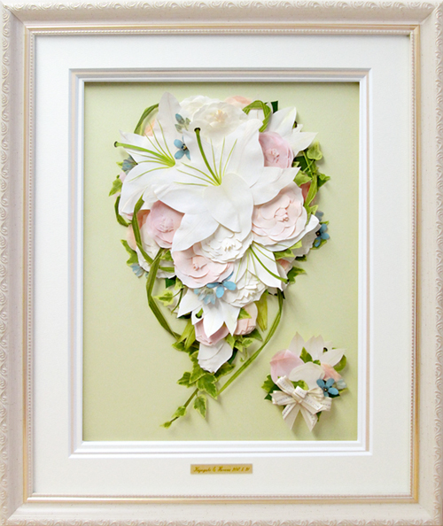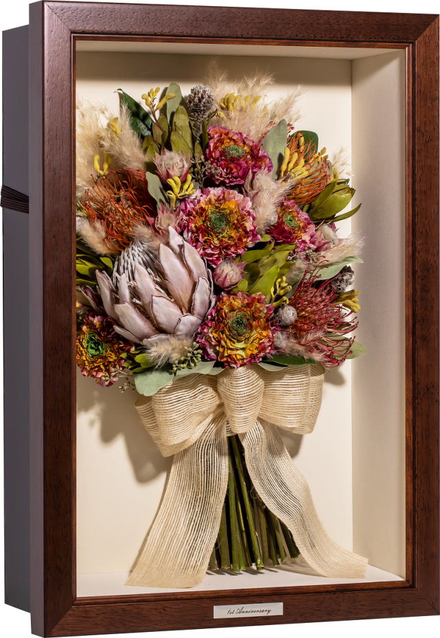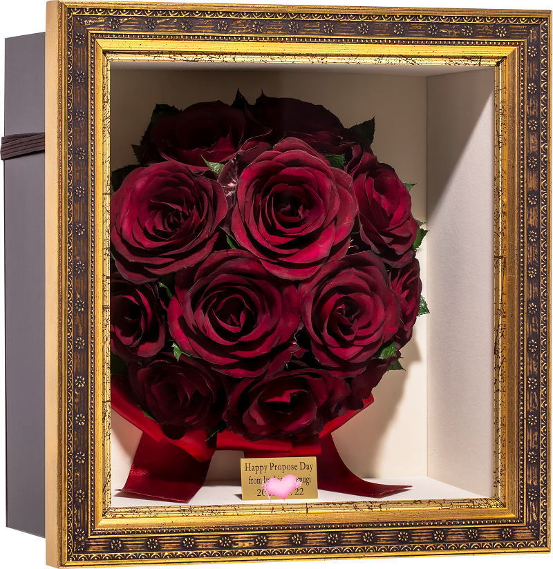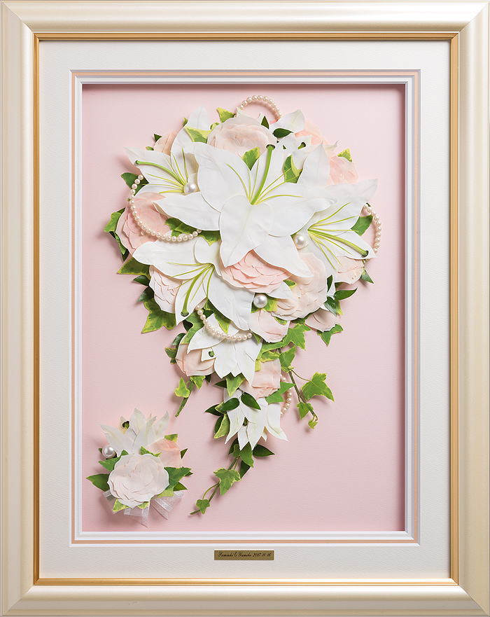 加工したお花をデザイナーが額にデザインし外気と遮断して