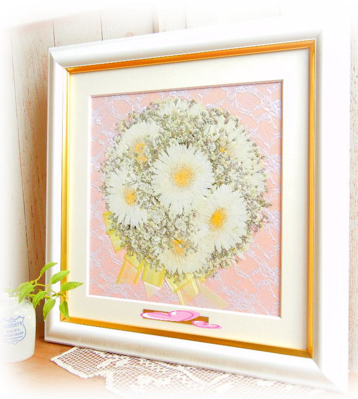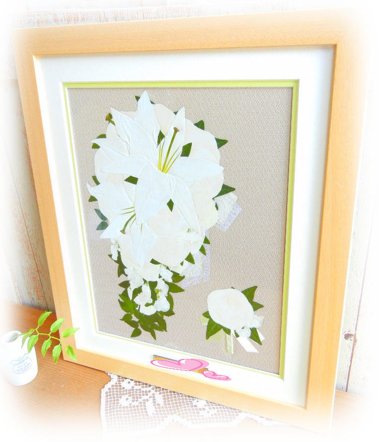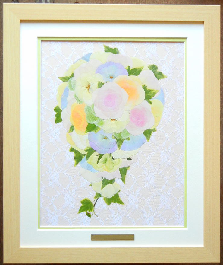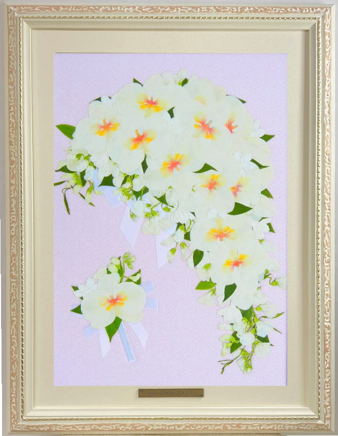 基本的にフレーム内のデザインはお預かりいたしましたブーケのスタイルを基にデザインさせていただきます。