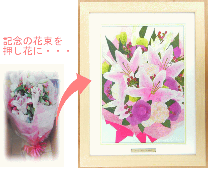 ウェディングブーケ以外でも記念の花束などの押し花加工も承ります