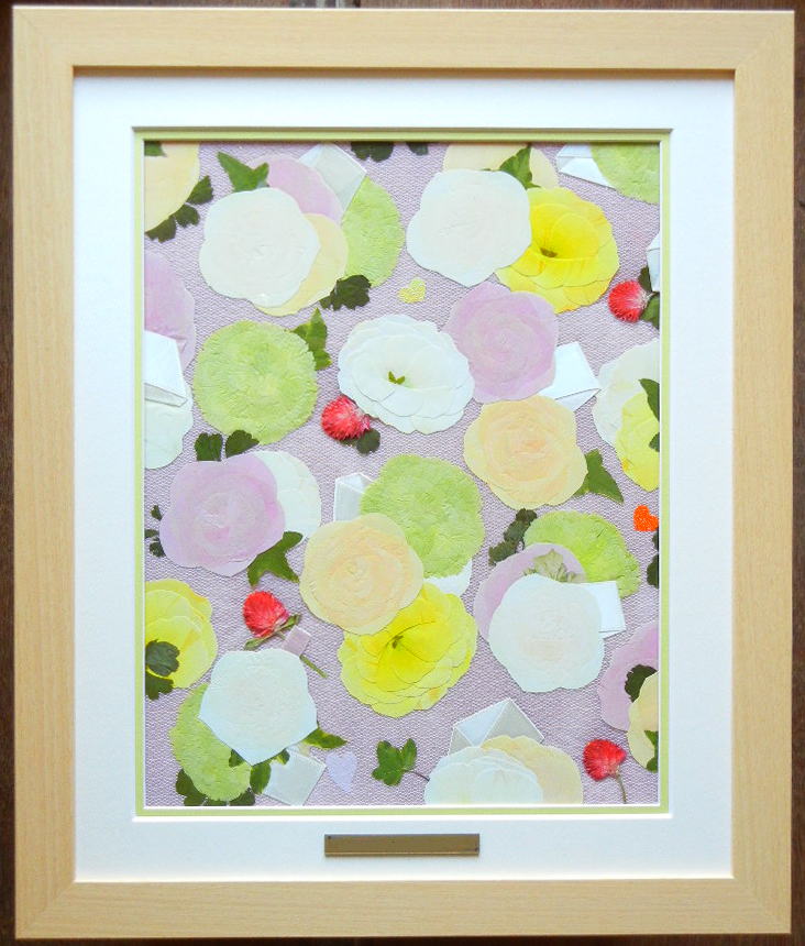 こちらのページの押し花は 最終工程でフレーム内の空気を抜くことにより