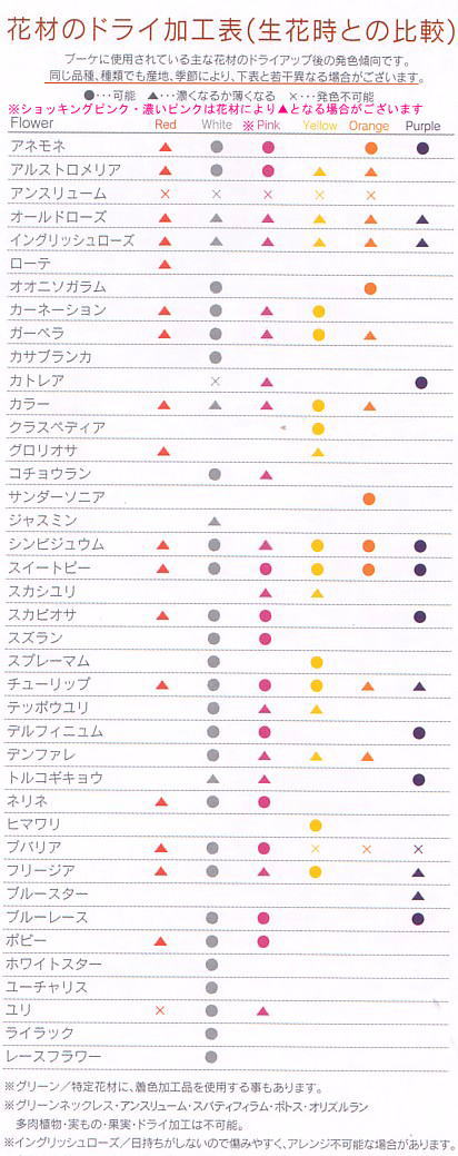 ドライ加工できない花材等の場合はアトリエ側の判断で使用しない、